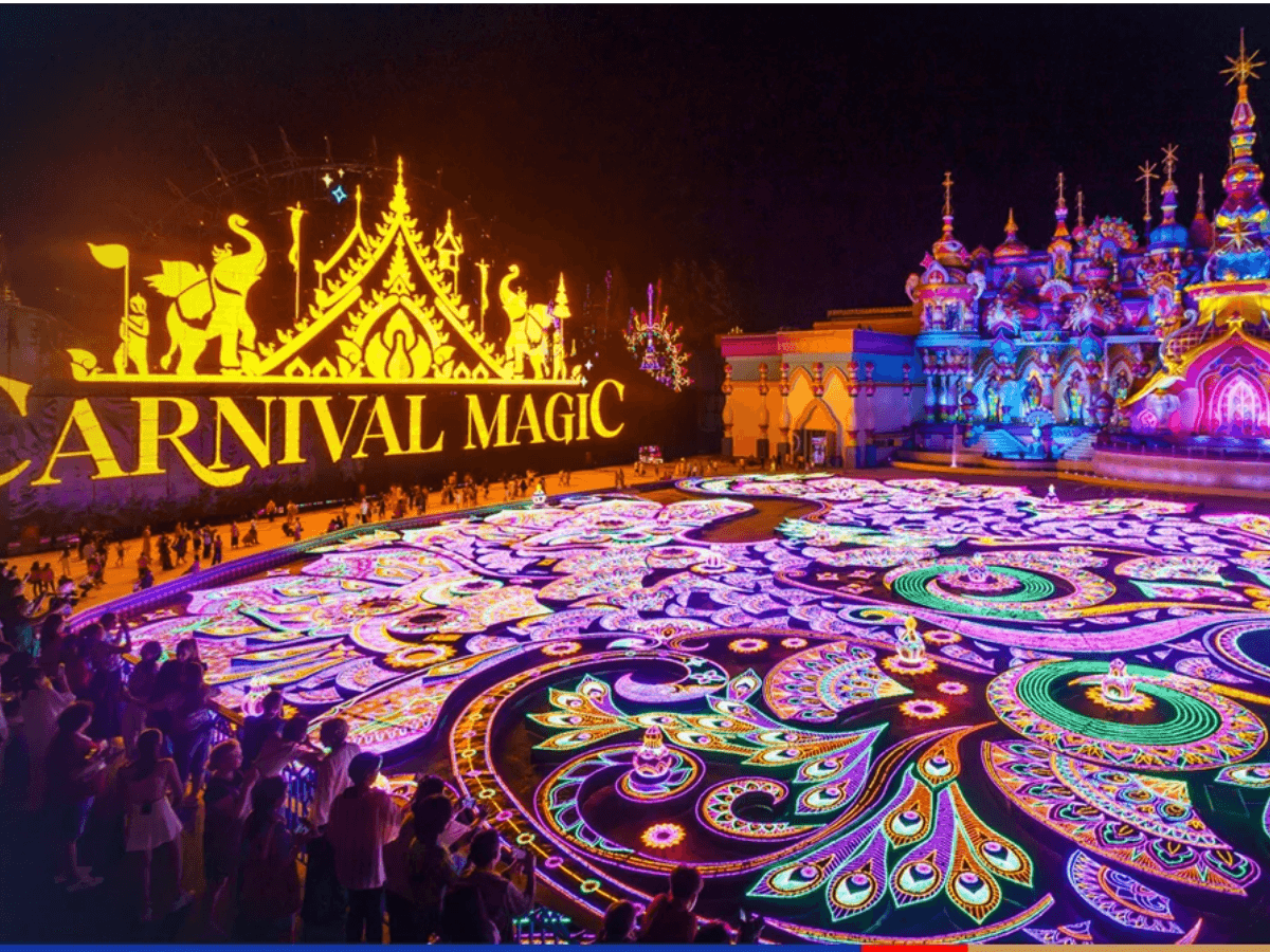 Just when you think the enchantment has reached its peak, prepare to be taken on a magical journey through a world of lights. The scale and beauty of this immersive experience is beyond words. As you leave the theater, you'll be greeted by a breathtaking display of lights that will leave you awestruck. The magical world of lights at Carnival Magic Phuket is a sight to behold, capturing the imagination and creating memories that will last a lifetime. This unique and awe-inspiring finale is the perfect way to conclude your evening of wonder and excitement.